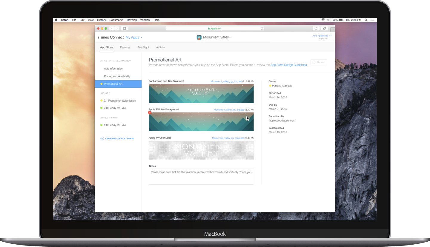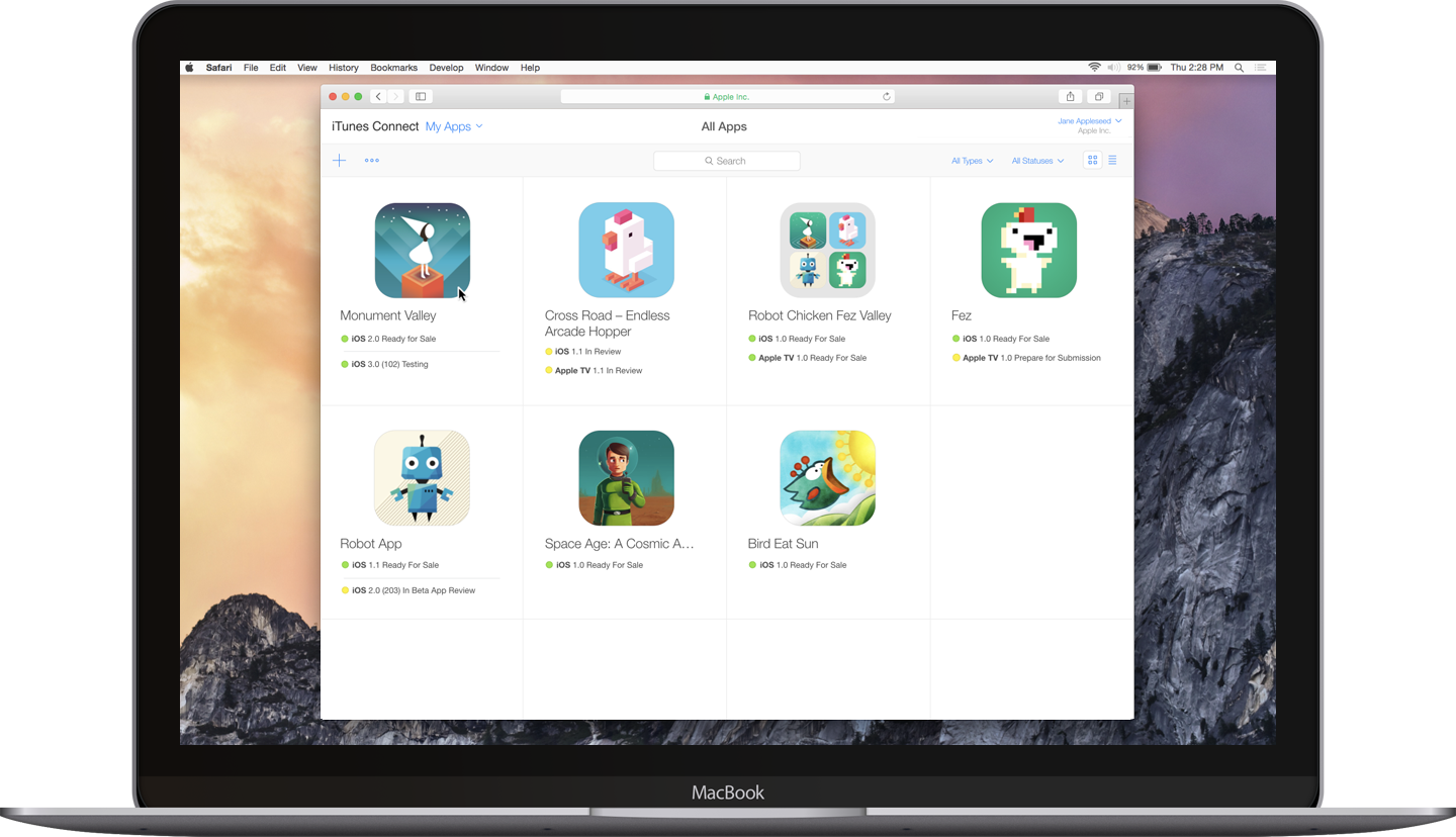 iTunes Connect has long been the administrative portal for managing everything from developer admin access and contracts, to App Store, Apple Podcasts, iTunes University, Apple Music, and Apple Film submissions. We sought to accomodate the unique needs of app developers with an improved log in experience, production analytics, app management across the variety of platforms, and apps store promotional asset submissions to App Review.