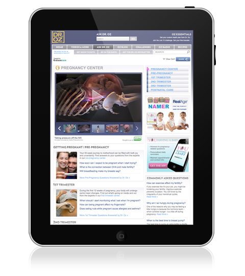 ATLANTA (2009) - Dr. Oz at Zoco in cooperation with Sony HARPO entertainment needed a topical portal to hold pregnancy centric content that paralleled Dr. Oz pregnancy related episodes and the release of the YOU: Having a Baby iPhone Application.